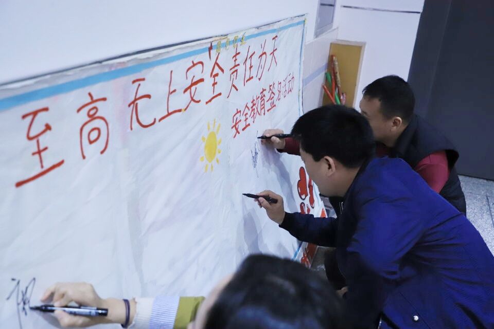 最后,禹建颖、李晓伟、鹿莹和全体员工干部及员工代表在“生命至高无上,安全责任为天”的签名板上签字。